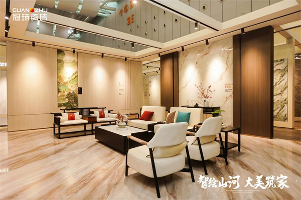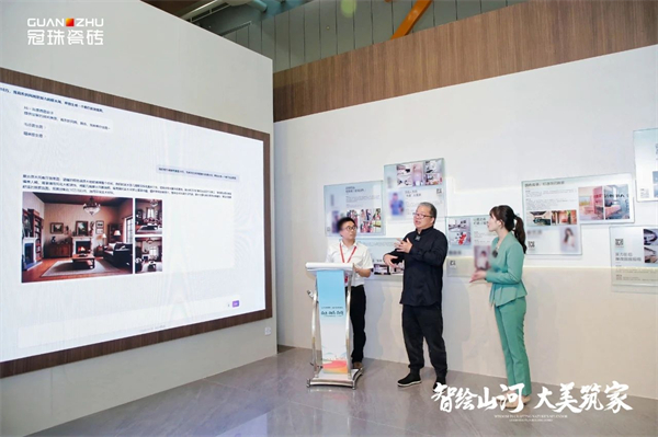 此外,冠珠瓷砖以“AI+文化”为驱动,率先交出“四智成果”答卷。其深度融合智绘设计、智造生产、智控品质、智享服务四大领域,构建全链路数智生态体系,展现中国智造魅力,演绎山河之美。
