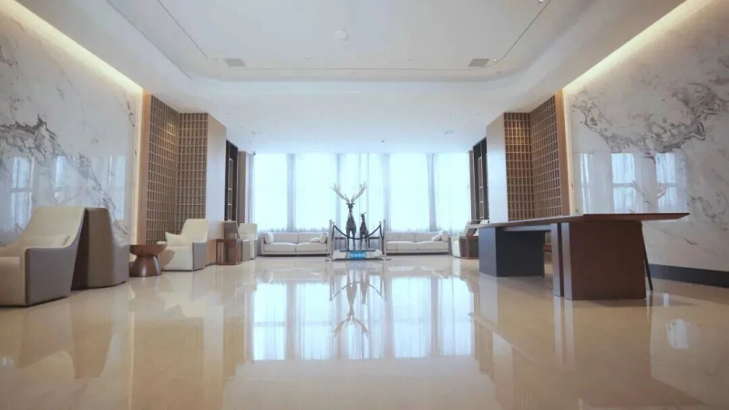 步入宴会厅,冠珠「金丝格雷卡尔」以纯粹的色彩与温润的光泽,带来静雅大气的空间基调,连贯的版面设计延伸了视觉效果,赋予空间整体感与叙事感。冠珠「金丝格雷卡尔」同步应用在电梯厅区域,其耐磨防污特性更经受住了高频使用的考验,成为公共区域品质与美学的双重保障。