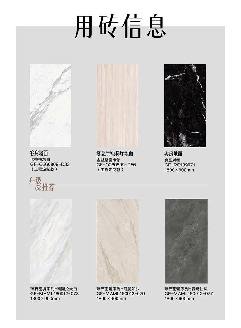 冠珠瓷砖始终以“大美设计+大美产品”为核心理念,探索酒店空间美学的新可能。这种实践背后,是冠珠瓷砖对“中国智造”与“东方美学”的深度融合。通过数字化技术赋能传统建材,冠珠岩板以媲美天然石材的美学呈现,将环保、功能、耐用性等功能完美平衡,为高端酒店工程提供了兼具艺术价值与商业价值的创新选择。