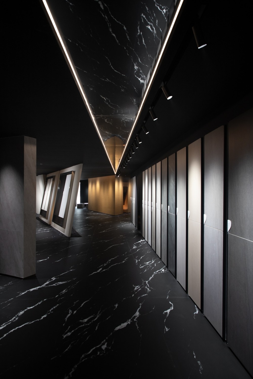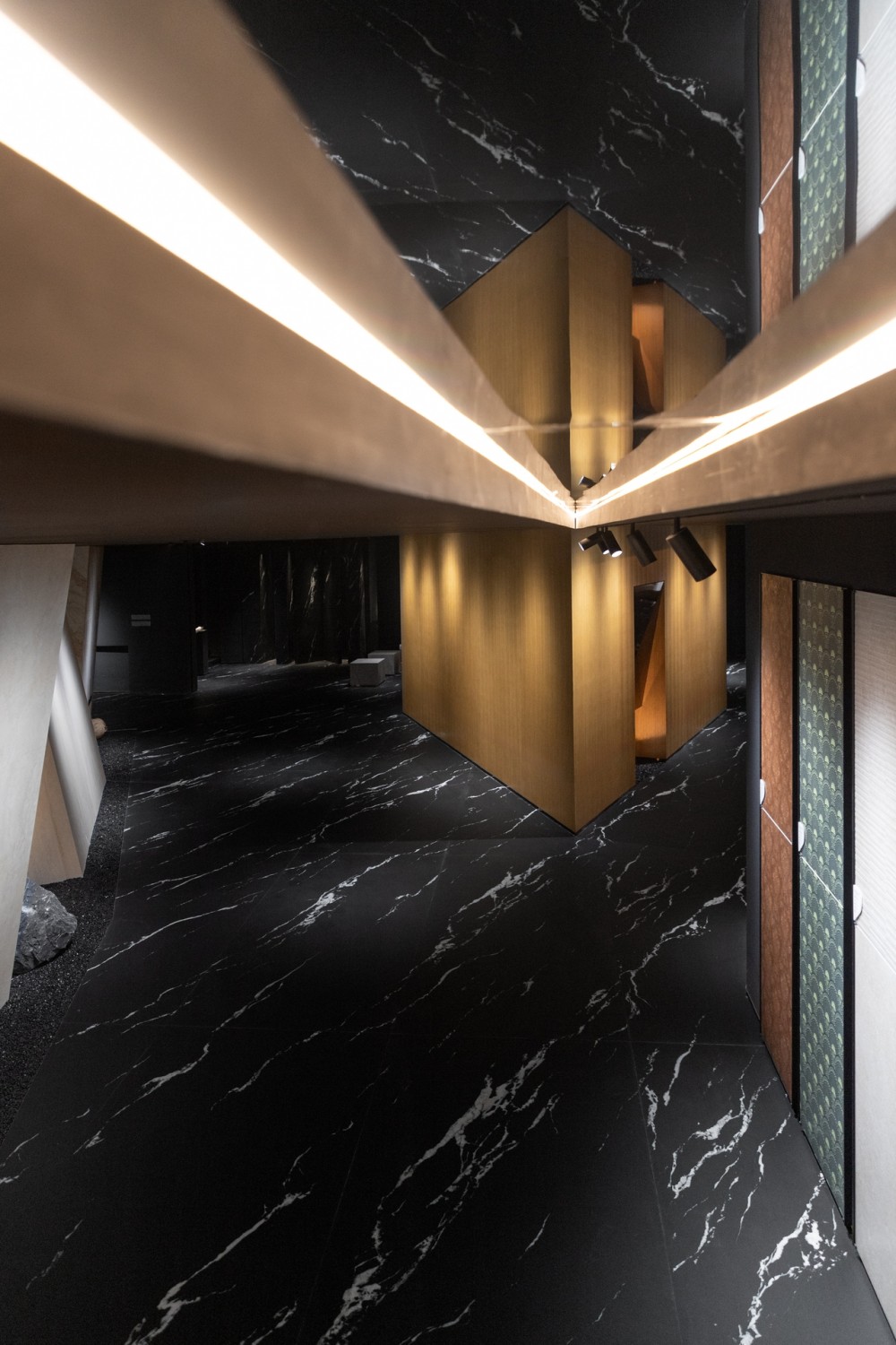 他阐释道,展厅大胆运用暗色基调,让产品成为空间的主角。同时,将品牌LOGO中的“V”符号解构为视觉韵律,营造出丰富的层次与动态张力。