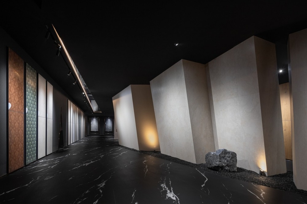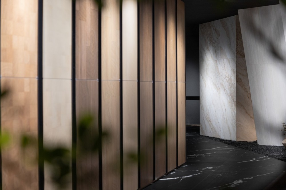 在自由探店环节,媒体嘉宾深入体验了VETOS CASA五大产品系列——【艺象】、【石间】、【地脉】、【花语】和【木韵】。从1200X2800mm、900X2600mm、900X1800mm、750X1500mm和600X1200mm,每一款产品都在光感矩阵的映衬下,展现出独特的魅力。