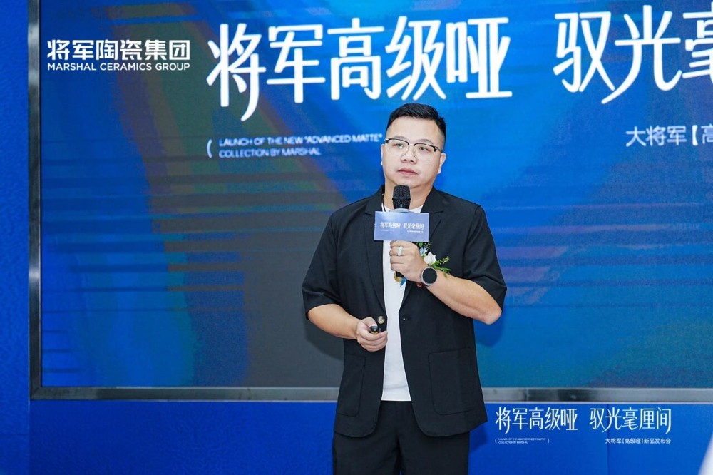 随后,佛山市陶瓷行业协会会长尹虹博士从行业维度深度解读“高级哑”的技术突破与市场价值。他指出,“高级哑”是光感美学的进阶表达,亦是功能与质感协同演进的典范。其背后所体现的精密工艺与用户思维,标志着陶瓷品类在审美升级与性能革新上的又一次重要跃迁。这既是对大将军创新实力的高度认可,也为整个行业树立了新的标杆。