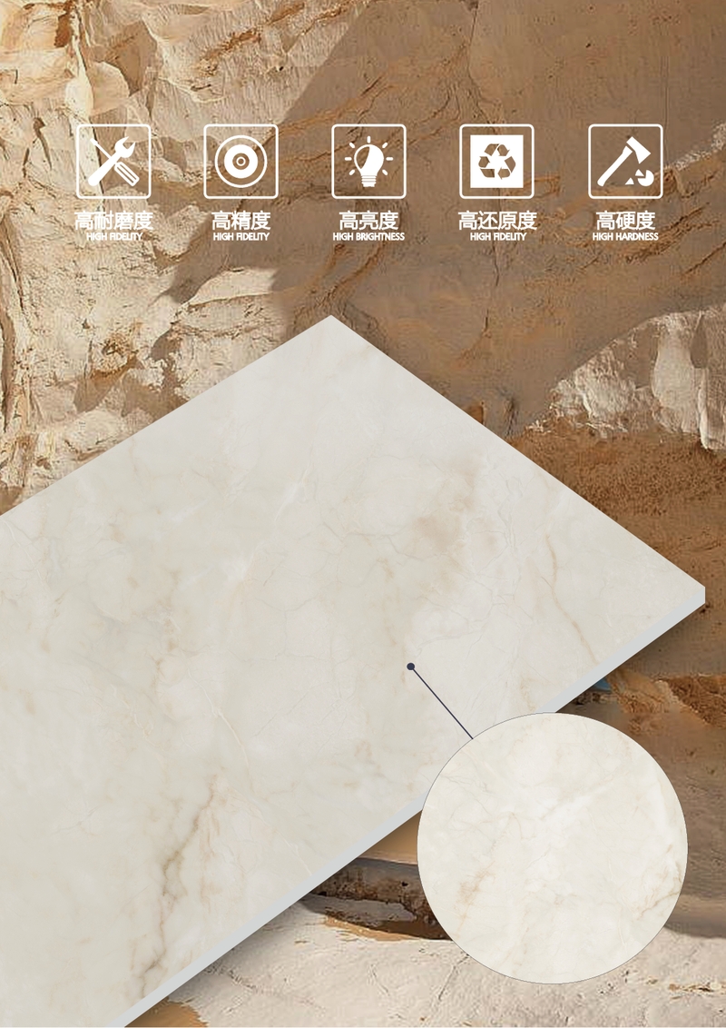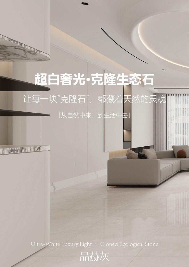 这并非一个简单的营销概念。它从根本上解决了瓷砖的“光感”问题。其底层是50°超白胚体,确保了釉面发色纯净、通透,使得最终呈现的色调出色而不出挑、夺目却不耀眼。它呈现出一种类似天然石材的柔和光感,视觉舒适高级,彻底告别了“室内光污染”和“死气沉沉”两个极端。