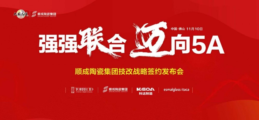 11月10日,顺成陶瓷集团在佛山总部成功举办强强联合,迈向5A——顺成陶瓷集团技改战略签约发布会。