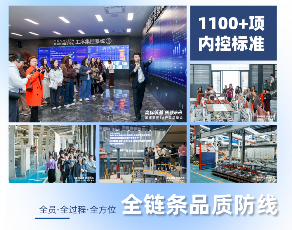 “国家标准从不是天花板,而是企业自我超越的起跑线”。集团品质中心总监潘炳宇的介绍,在嘉宾走进5A生产线过程中得到直观印证。蒙娜丽莎5A产品生产线已构建“全流程、全要素、全周期”的闭环质控模式,将1100多项严于国标的内控标准深度嵌入研发、生产、供应链各个关键环节,并借助数字化溯源系统实现从原料到成品的全程可追溯与可调控。