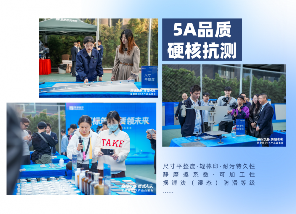 行业权威专家、主流媒体与集团高管齐聚一堂,通过技术解读、工艺展示及产品体验等环节,共同见证建陶行业质量分级时代的开启。此次发布的5A产品作为“品质重器”,不仅为转型关键期的建陶产业提供了可借鉴的高质量发展路径,也以清晰、可量化、可视化的品质标尺,精准回应消费者对居住品质提升的核心诉求。