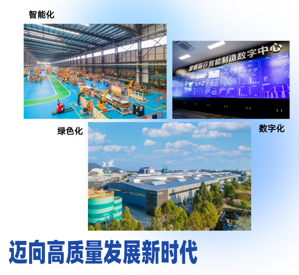 中国制造的高质量发展之路,核心在于创新和品质。这既是时代赋予中国企业的使命担当,也是蒙娜丽莎集团三十余载深耕不辍的坚定信仰。正如蒙娜丽莎所坚信的,“质量是企业的生命,创新是蒙娜丽莎人的性格。”这种植根于基因的质量文化与创新精神,推动蒙娜丽莎实现从规模生产向品质创造的转型,稳步迈向高质量发展标杆企业的新境界。