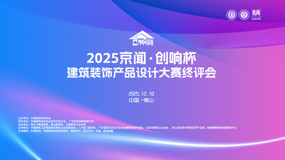 12月10日,2025 京闻・创响杯建筑装饰产品设计大赛终评会在广东佛山隆重举行。本次大赛以 “创响设计・赋能建筑装饰新生态” 为核心,秉持高规格、强专业的办赛理念,汇聚行业顶尖力量与优质应用设计作品,聚焦陶瓷、建筑、卫浴、五金、门窗、新材料等核心品类展开巅峰对决,为推动行业创新升级与质量提升树立鲜明标杆。