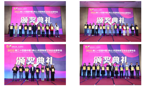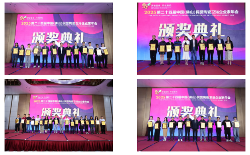 期间,年会还对2025年度部分优秀陶瓷、卫浴与配套企业进行了隆重的颁奖仪式,颁发了“十大建陶风云企业”、“十大建陶明星企业”、“优秀陶机装备品牌企业”、“优秀建陶色釉料品牌企业”等奖项。